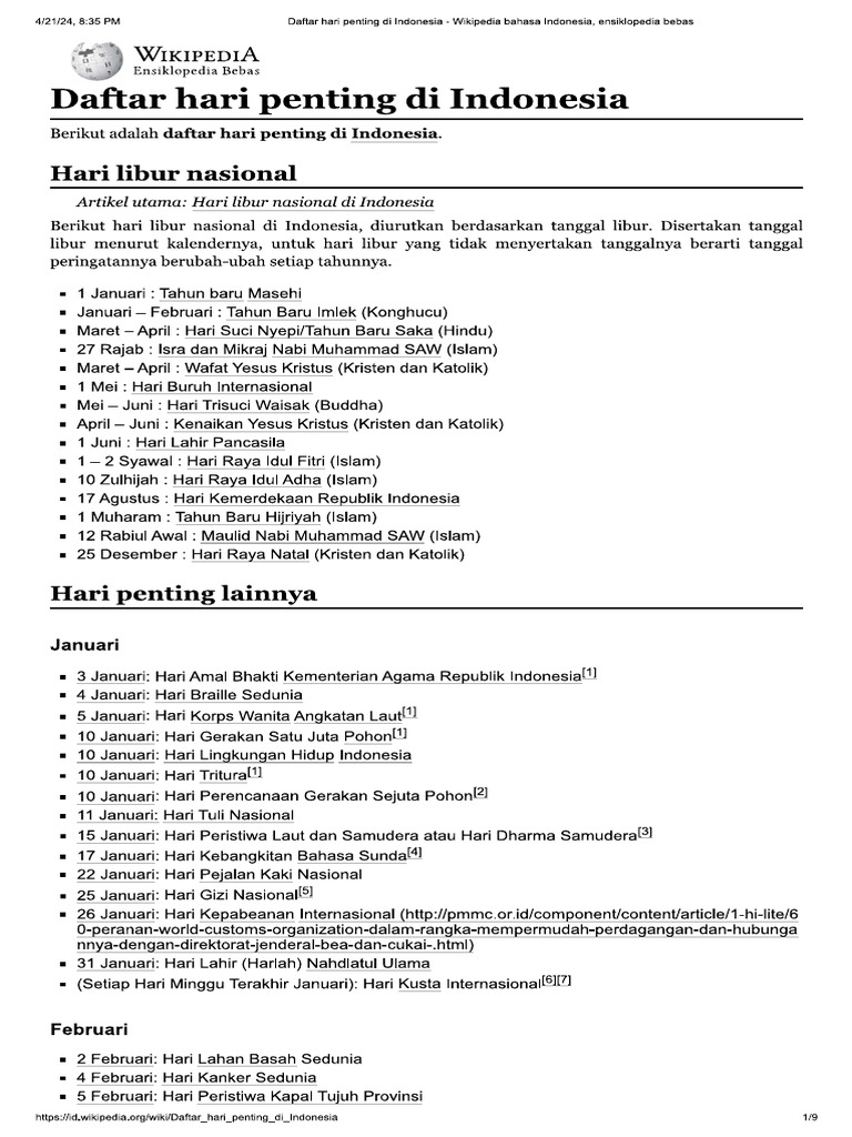 Berikut adalah deretan hari besar atau hari penting nasional dan internasional sepanjang Maret 2026: