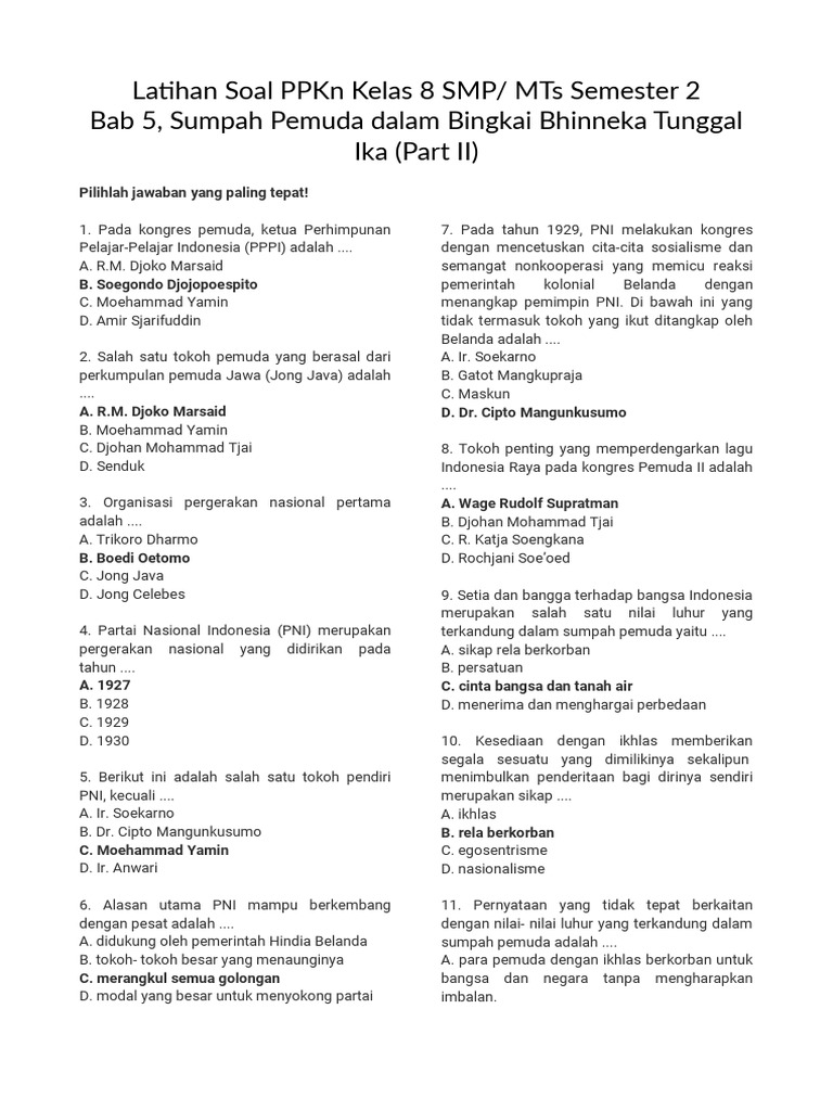 - Artikel ini memuat 50 contoh soal PAS/SAS PPKN Kelas 8 SMP Semester 2 Tahun 2026 yang disusun berdasarkan Kurikulum Merdeka Tahun Pelajaran 2025/2026 dan dilengkapi kunci jawaban lengkap.