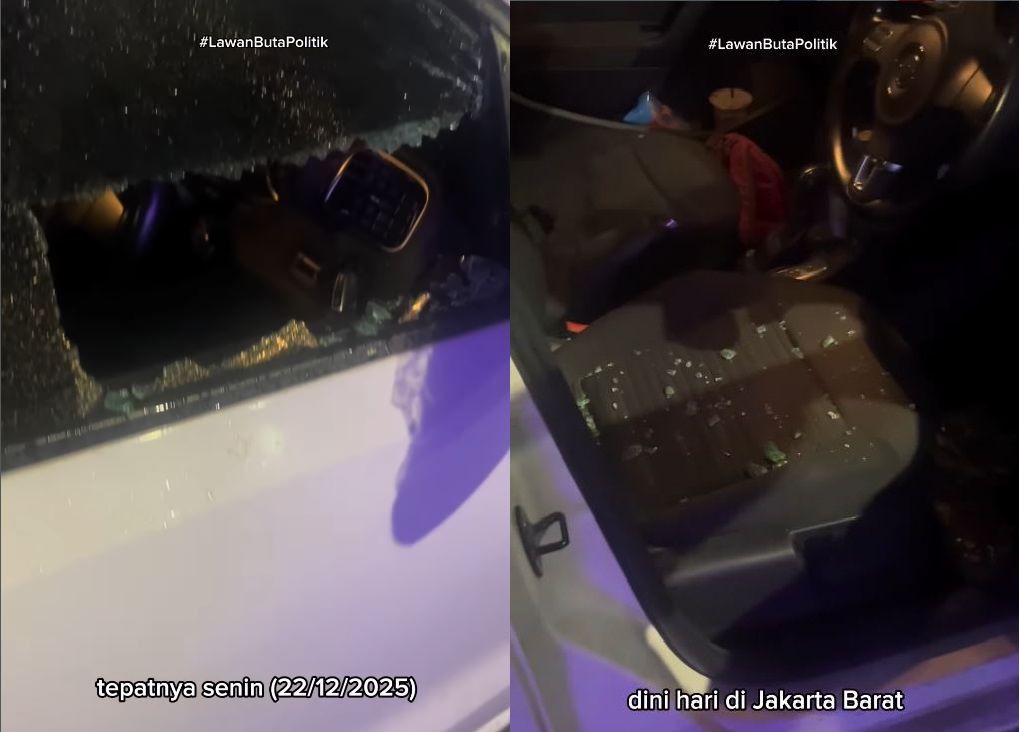 Kaca pintu kanan depan VW Polo miliknya sengaja dipecah orang tak dikenal (OTK) di Jakarta Barat, (22/12/25) lalu.