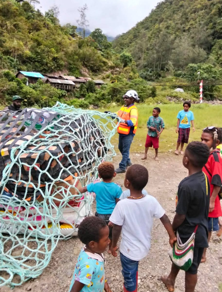 Setelah berbelanja, barang-barang milik masyarakat Aroanop, Tsinga, dan Jila dikemas ulang dan diterbangkan menggunakan helikopter langsung ke kampung halaman mereka, memastikan persiapan Natal berjalan lancar tanpa hambatan logistik.