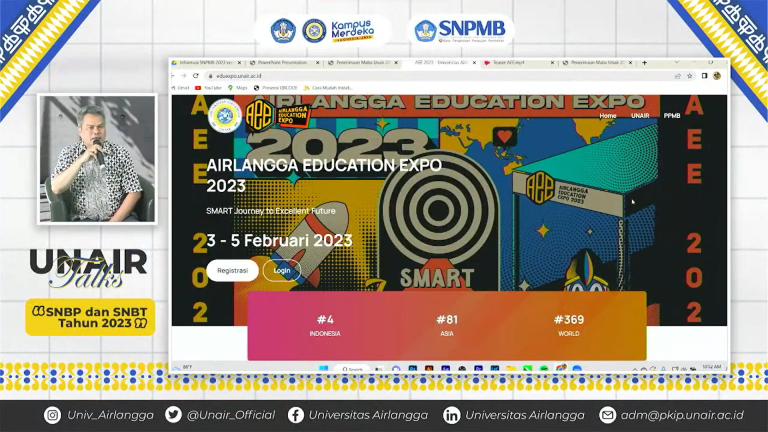 Ketua Pusat Penerimaan Mahasiswa Baru (PPMB) UNAIR, Achmad Solihin, menegaskan bahwa AEE bukan hanya sekadar ajang pameran pendidikan, tetapi juga menjadi salah satu syarat wajib dalam seleksi proses jalur masuk Golden Ticket UNAIR.