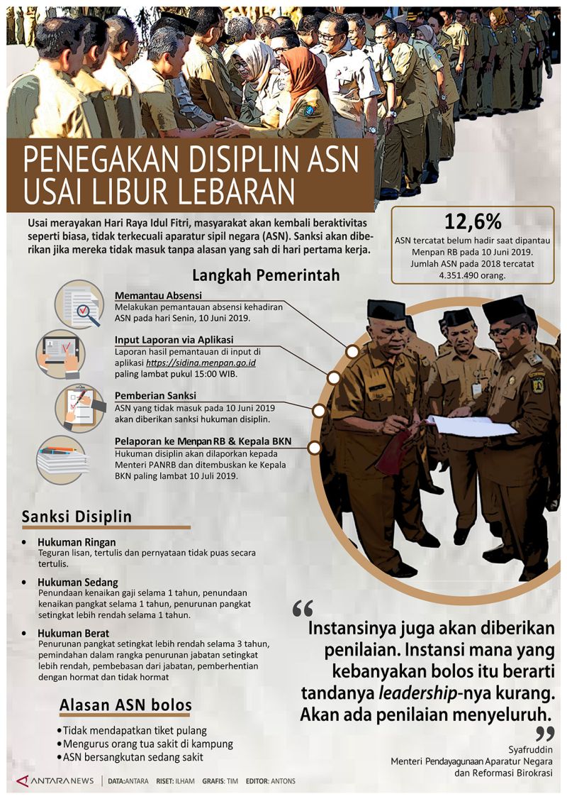 “Sanksi ini dapat berupa teguran lisan untuk pelanggaran ringan. Sedangkan untuk pelanggaran berat, ASN bisa dikenai sanksi seperti diberhentikan, tidak naik jabatan, atau diturunkan pangkatnya,” papar Syaifudin Zuhri.