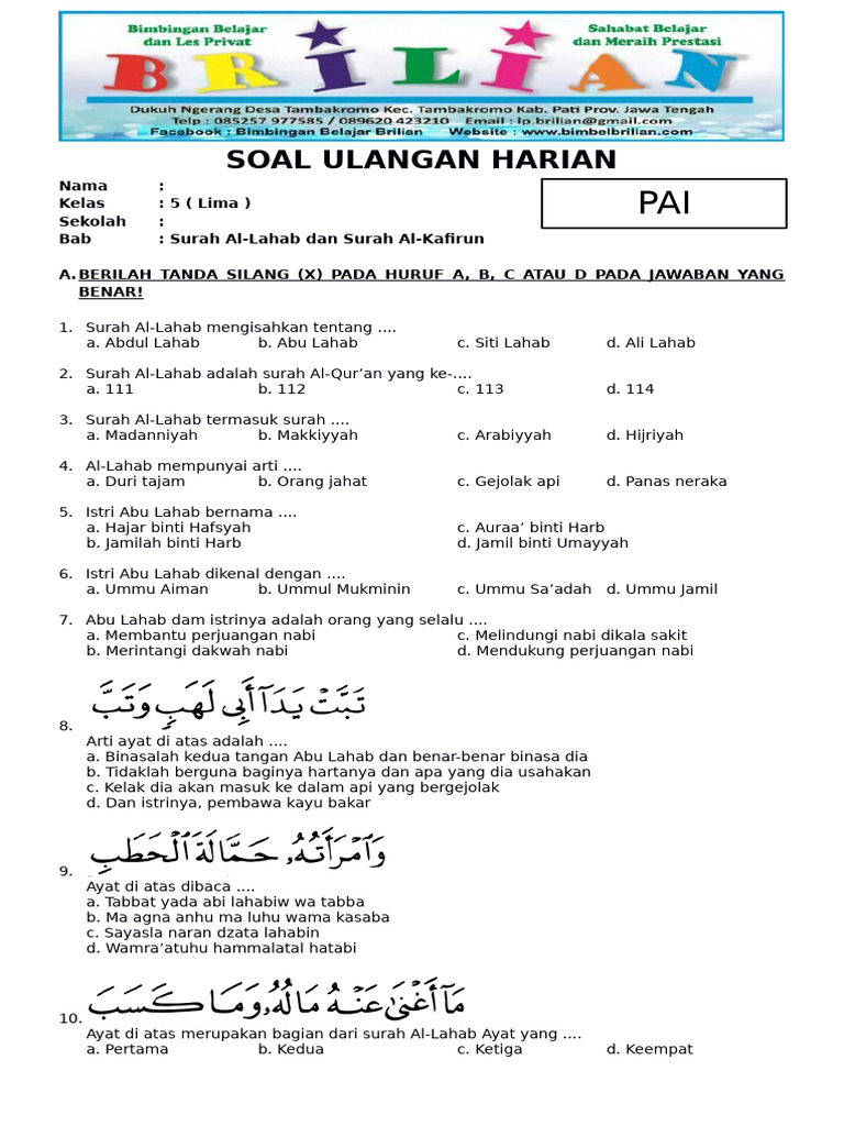 - Soal-soal ini bertujuan membentuk sikap beriman, gemar berbuat kebajikan, dan menjaga hubungan persaudaraan sejak dini.