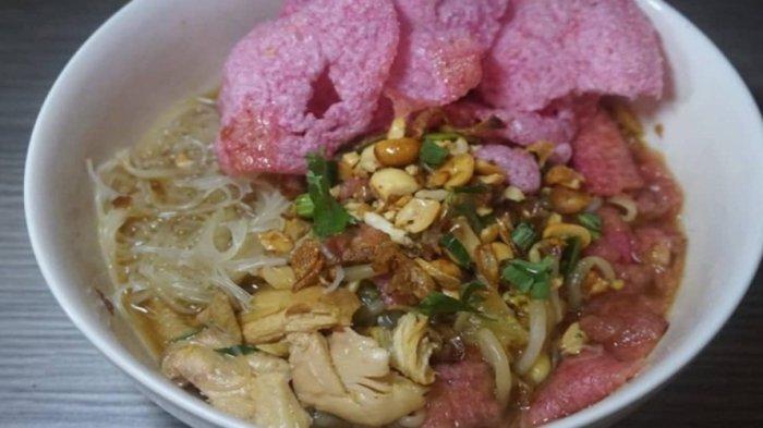 Keistimewaan Soto Jarkomi ada pada kuah bening gurih dari kaldu ayam kampung, bihun lembut, suwiran ayam, taburan bawang goreng, dan tambahan kerupuk merah yang khas.