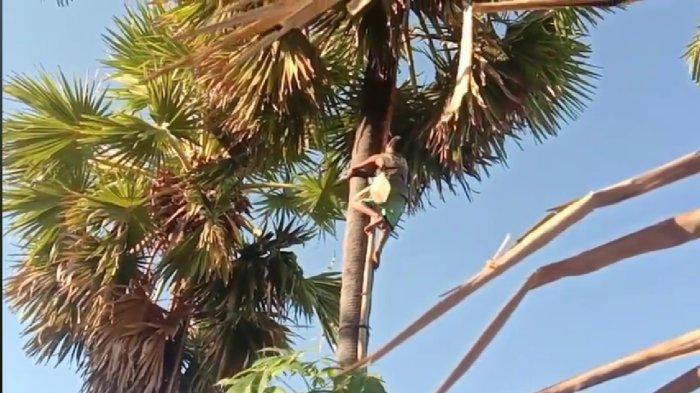 Pembersihan Mayang: Bunga jantan (mayang) dari pohon lontar dibersihkan dan dipijat-pijat pertahan agar melunak.