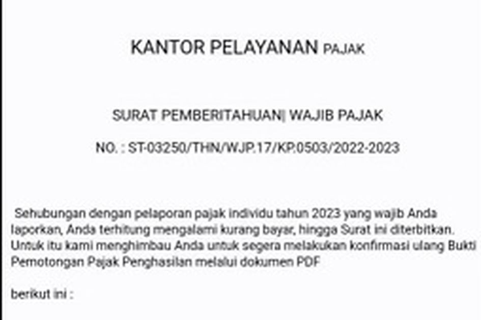 Warga harus memverifikasi informasi yang diterima melalui saluran resmi, seperti situs web DJP (Direktorat Jenderal Pajak) atau nomor layanan pelanggan. Jangan percaya informasi yang datang dari sumber tidak jelas. -