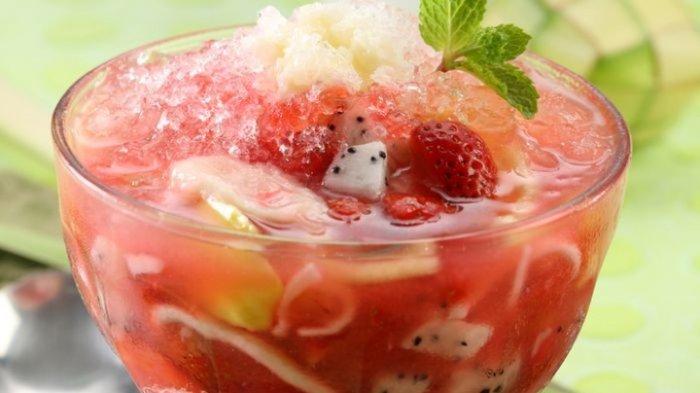Es campur menawarkan perpaduan berbagai isian seperti buah, cincau, kelapa muda, dan sirup manis.