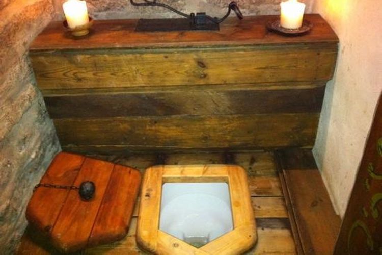 Sementara itu, kalangan bangsawan menggunakan “garderobe”, yakni ruangan kecil yang menjorok keluar bangunan dengan lubang pembuangan langsung ke parit atau sungai.