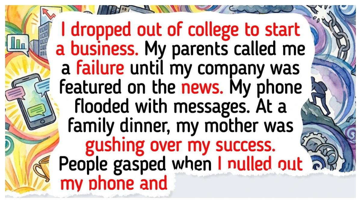 Saya berjuang selama bertahun-tahun tanpa dukungan dari siapa pun. Hingga akhirnya perusahaan saya ditampilkan di berita lokal minggu lalu. Mereka menyebut saya inovatif dan membicarakan betapa suksesnya saya, bahkan tanpa ijazah perguruan tinggi.