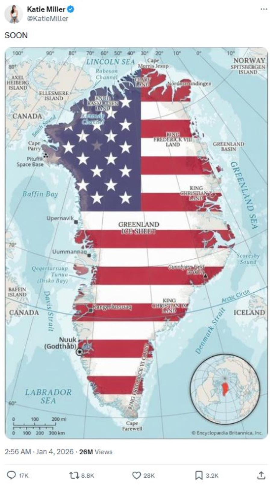 Sebagai informasi, Greenland, yang terletak di Samudra Atlantik Utara, merupakan bagian dari Kerajaan Denmark.