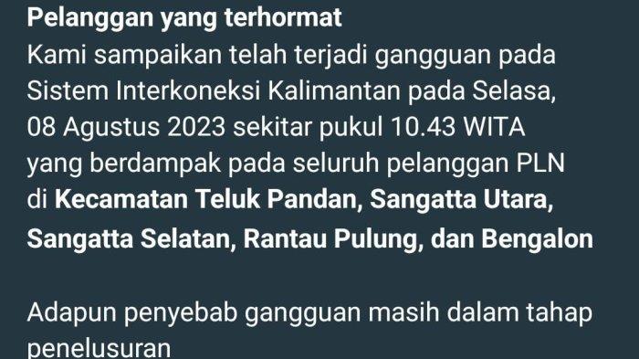 Akibat ledakan tersebut, disebutkan dalam informasi unggahan aliran listrik di wilayah Loa Duri Ilir dan sekitarnya dilaporkan langsung padam.